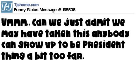 X says Ummm,, Can we just admit we may have taken this anybody can grow up to be President thing a bit too far.
