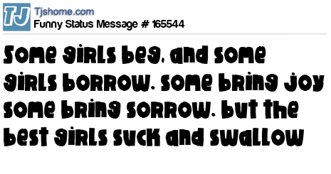 - # 99154 Sum girls beg&sum girls borrow sum girls lead & sum girls follow sum bring joy & sum bring sorrow but the best girls just suck & swallow!!