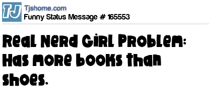 X says Real Nerd Girl Problem: Has more books than shoes.