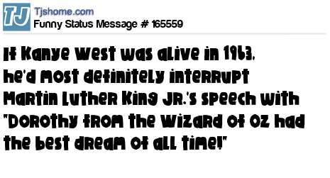 X says If Kanye West was alive in 1963, he'd most definitely interrupt Martin Luther King Jr.'s speech with "Dorothy from the Wizard of Oz had the best dream of all time!"