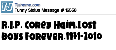 X says R.I.P. Corey Haim.Lost Boys Forever.1971-2010