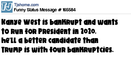 X says Kanye West is bankrupt and wants to run for President in 2020, he'll a better candidate than Trump is with four bankruptcies.