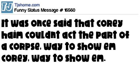 X is it was once said that corey haim couldnt act the part of a corpse, way to show em corey, way to show em.