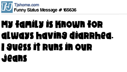 X says my family is known for always having diarrhea. I guess it runs in our jeans