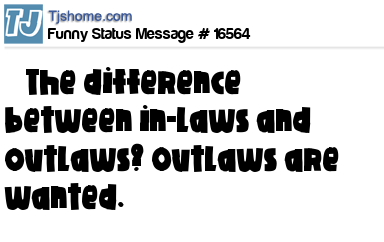 - # 70021 asks..what's the difference between in-laws and outlaws? Outlaws are wanted.