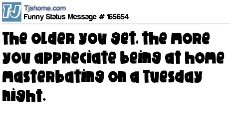 X says The older you get, the more you appreciate being at home masterbating on a Tuesday night.