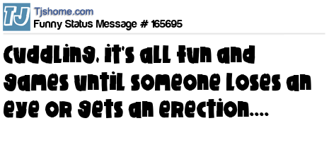 X says Cuddling, it's all fun and games until someone loses an eye or gets an erection....