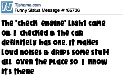 - # 110700 If my "check engine" light would just "check my wallet"....It would know there's nothing I can do about it.