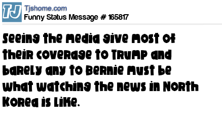 X says Seeing the media give most of their coverage to Trump and barely any to Bernie must be what watching the news in North Korea is like.