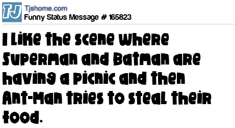X says I like the scene where Superman and Batman are having a picnic and then Ant-Man tries to steal their food.
