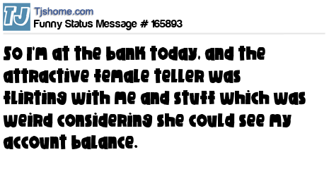 - # 171426 That moment when you want to hit on the bank teller but realize she'll see your bank account balance