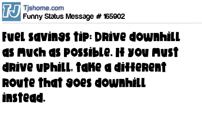 X says Fuel savings tip: Drive downhill as much as possible. If you must drive uphill, take a different route that goes downhill instead.