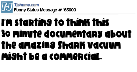 - # 147291 Starting to think this 30 minute documentary about the amazing Shark vacuum cleaner might be a commercial.