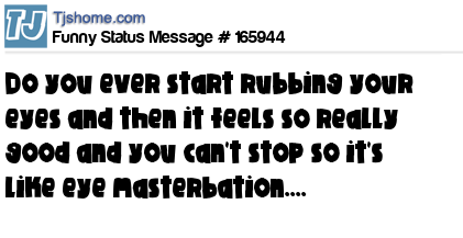 X says Do you ever start rubbing your eyes and then it feels so really good and you can't stop so it's like eye masterbation....