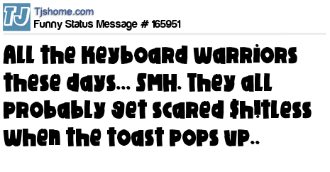 X says All the keyboard warriors these days... SMH. They all probably get scared $h!tless when the toast pops up..