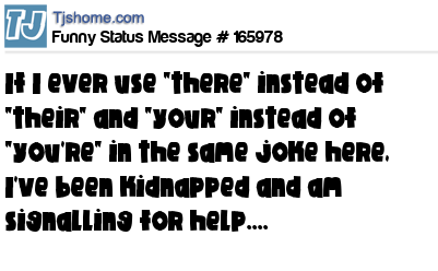 X says If I ever use "there" instead of "their" and "your" instead of "you're" in the same joke here, I've been kidnapped and am signalling for help....