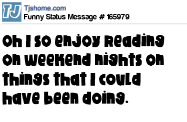 X says Oh I so enjoy reading on weekend nights on things that I could have been doing.