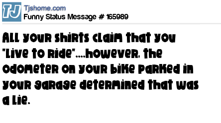 X says All your shirts claim that you "live to ride"....however, the odometer on your bike parked in your garage determined that was a lie.