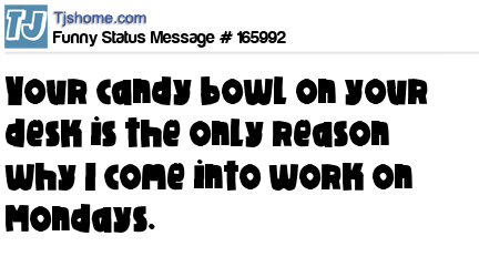 X says Your candy bowl on your desk is the only reason why I come into work on Mondays.