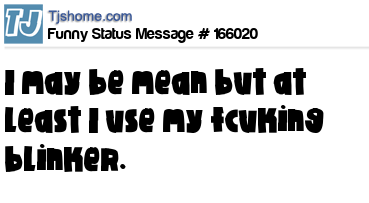 X I may be mean but at least I use my fcuking blinker.