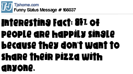 X says Interesting Fact: 87% of people are happily single because they don't want to share their pizza with anyone.