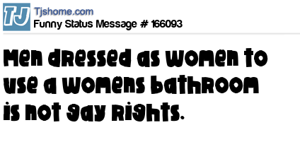 X says Men dressed as women to use a womens bathroom is not gay rights.