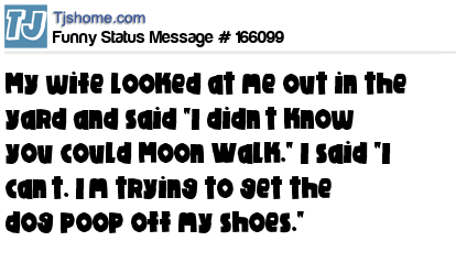 X says My wife looked at me out in the yard and said "I didn’t know you could Moon Walk." I said "I can’t. I’m trying to get the dog poop off my shoes."