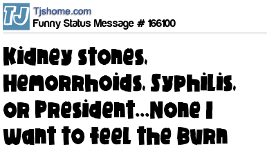 X Kidney stones, Hemorrhoids, Syphilis, or President...None I want to feel the Burn