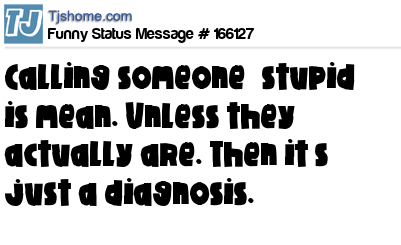 - # 47493 Calling someone "stupid" is mean. Unless they actually are. Then it's just a diagnosis.