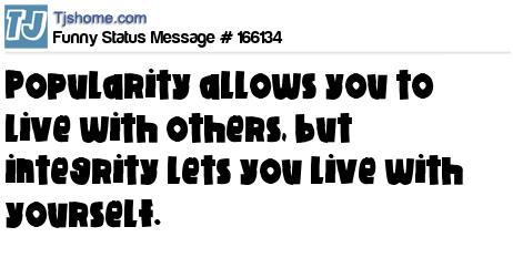 X says Popularity allows you to live with others, but integrity lets you live with yourself.
