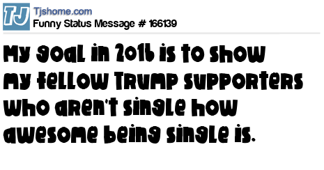 X says My goal in 2016 is to show my fellow Trump supporters who aren't single how awesome being single is.