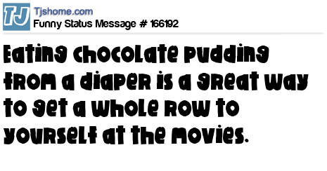 X says Eating chocolate pudding from a diaper is a great way to get a whole row to yourself at the movies.