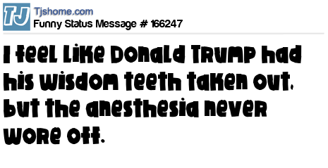X I feel like Donald Trump had his wisdom teeth taken out, but the anesthesia never wore off.
