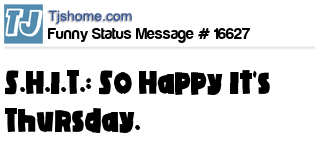 - # 37321 S.H.I.T.: So Happy It's Thursday.