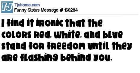 - # 99335 I find it ironic that the colors red, white, and blue represent freedom until they are flashing behind you.