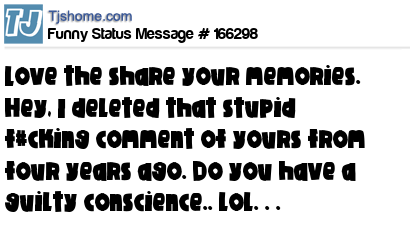 X says Love the share your memories. Hey, I deleted that stupid f#cking comment of yours from four years ago. Do you have a guilty conscience.. lol. . .