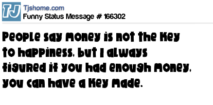 - # 161647 People say that money is not the key to happiness, but I always figured if you have enough money, you can have a key made.