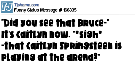 X says "Did you see that Bruce-" It's Caitlyn now. "*sigh* -that Caitlyn Springsteen is playing at the arena?"