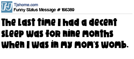 X says The last time I had a decent sleep was for nine months when I was in my mom's womb.
