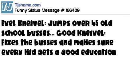 X says Evel Kneivel: Jumps over 45 old school busses... Good Kneivel: Fixes the busses and makes sure every kid gets a good education