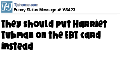 - # 166469 Shouldn't they just put Harriet Tubman's face on EBT cards???