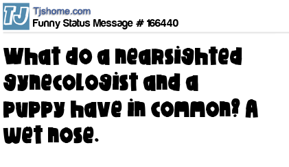- # 72056 What do a nearsighted gynecologist and a puppy have in common? A wet nose.