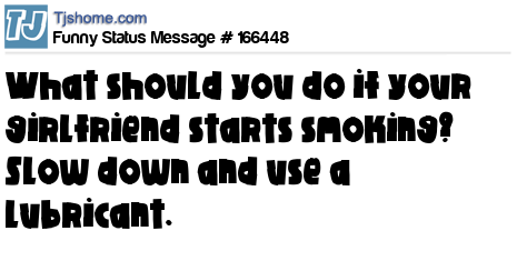 X says What should you do if your girlfriend starts smoking? Slow down and use a lubricant.