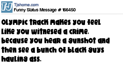 X says Olympic track makes you feel like you witnesed a crime, because you hear a gunshot and then see a bunch of black guys hauling ass.