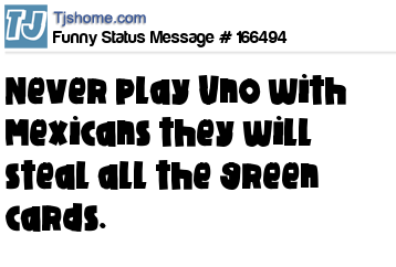 - # 166662 Why can't you play Uno with a Mexican? They steal all the green cards.
