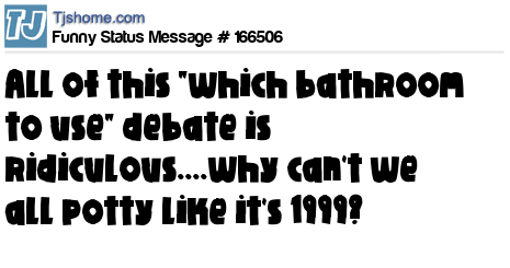 X says All of this "which bathroom to use" debate is ridiculous....why can't we all potty like it's 1999?