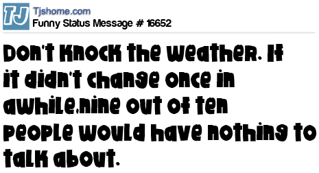 X Don't knock the weather. If it didn't change once in awhile,nine out of ten people would have nothing to talk about.