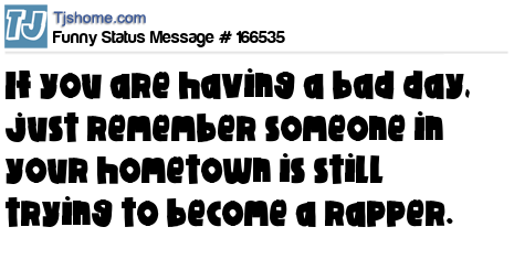 - # 159345 If you are having a bad day, just remember that someone from your home town is still trying to become a rapper.