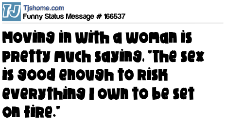 X says Moving in with a woman is pretty much saying, "The sex is good enough to risk everything I own to be set on fire."