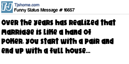 X is over the years has realized that marriage is like a hand of poker, you start with a pair and end up with a full house...